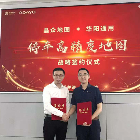 2019年11月5日,华阳通用与江苏晶众信息科技有限公司(简称“晶众地图”)联合开展的“停车高精度地图”战略签约仪式,在华阳通用公司举行。 华阳通用产品规划总监张海军、晶众地图副总裁兼智能网联地图事业部COO杨柯,分别代表公司参会、签署战略合作协议。双方将建立长期稳定的战略合作伙伴关系,围绕“停车导航、高精地图、自动代客泊车”等领域展开深层次的战略合作。